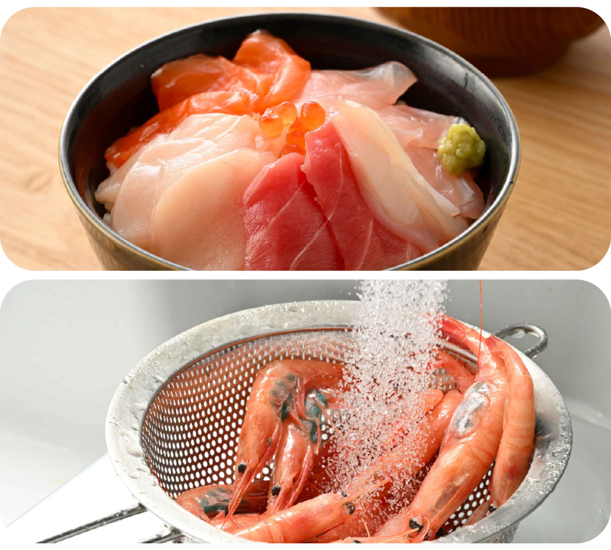 港から直接仕入れた新鮮な魚介類をその日のうちに丁寧に加工し、独自の技術で鮮度を保ちながら冷凍。まるで水揚げしたてのような海の幸を味わえます。