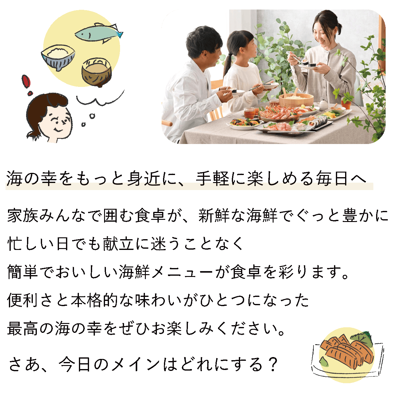解凍後すぐに食べられる手軽さで、忙しい日でも満足のいく食卓を実現。「こういうの欲しかった!」を形にした、便利で美味しい海の幸をお楽しみください。