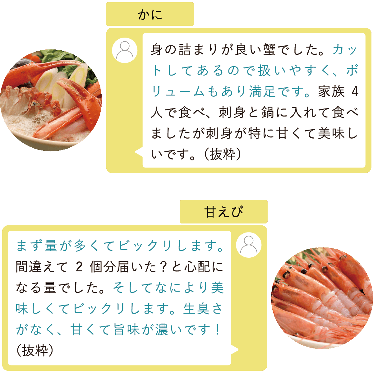 海鮮パックをはじめ、カニやエビなど手軽に
